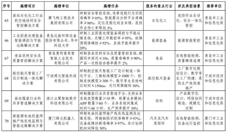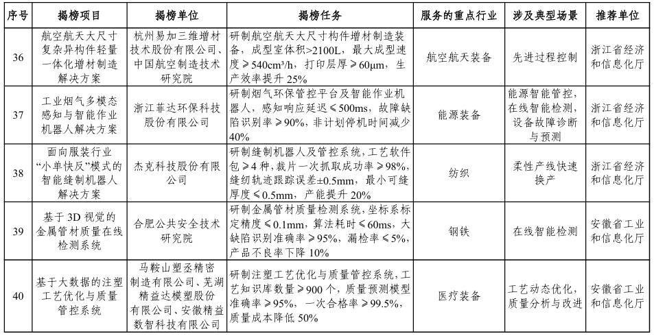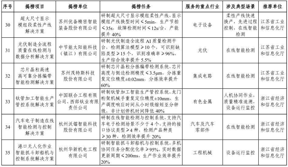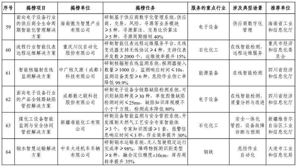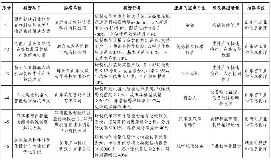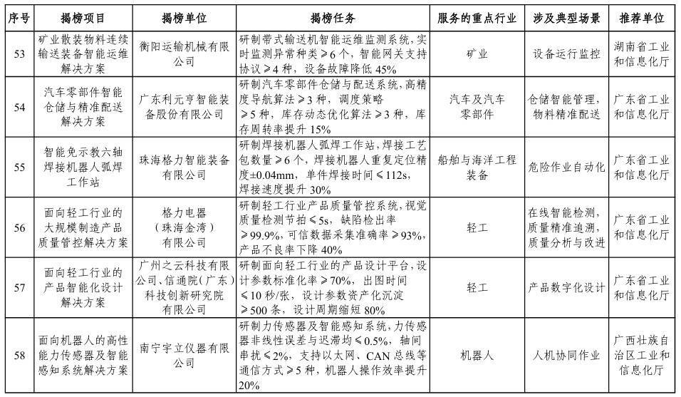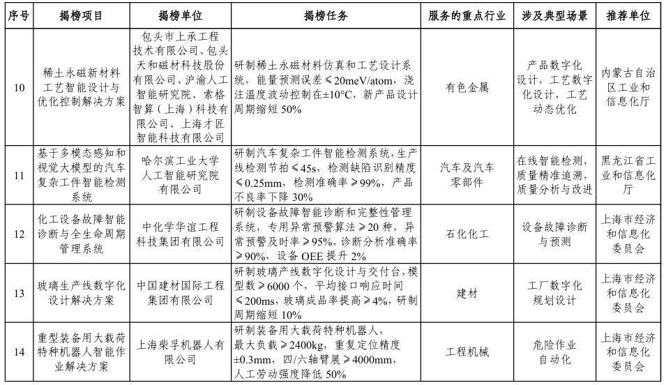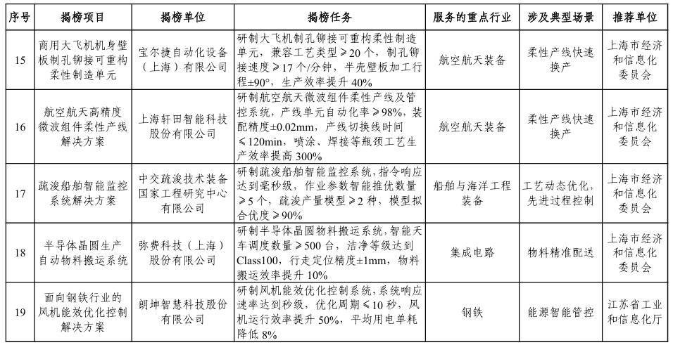【大河财立方消息】1月5日,工业和信息化部办公厅、市场监管总局办公厅发布关于印发2025年度智能制造系统解决方案“揭榜挂帅”项目名单的通知。