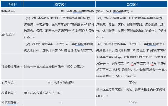 表:中证港股通消费主题指数修订方案介绍